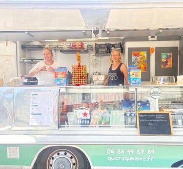 C’est ainsi qu’est né “Qui Croque Dîne...”, notre food truck gourmand, un lieu où l’on vient autant pour se régaler que pour retrouver cette ambiance simple, chaleureuse et conviviale qui fait le charme de chez nous. Parce que "chez nous", chaque recette raconte une histoire.
